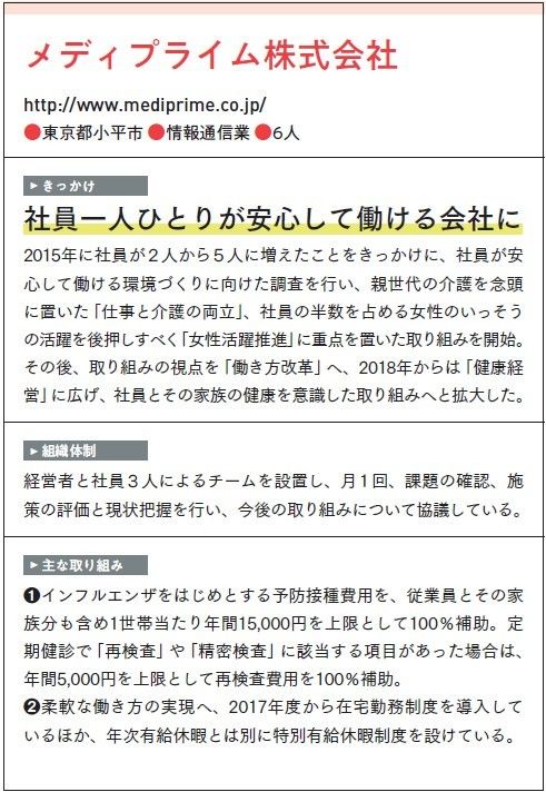 経済産業省が2021年3月に発行した「健康経営優良法人2021(中小規模法人部門)認定法人 取り組み事例集」に弊社の取り組みが掲載されました。